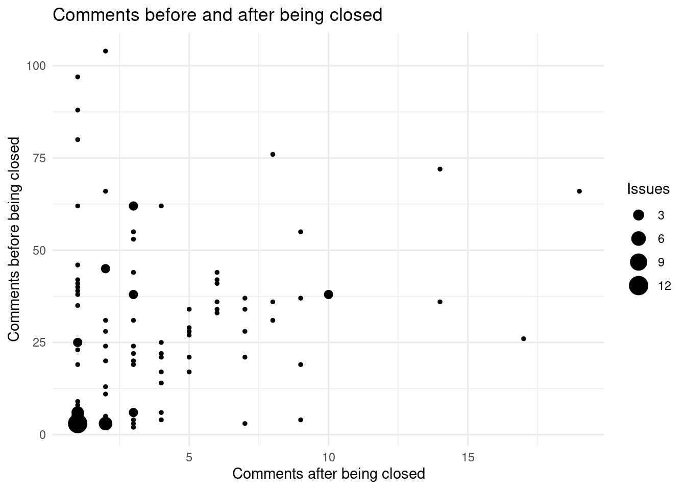 Some issues have fairly large number of comments after being closed. Perhaps discussing other alternatives or comparing to other existing software.